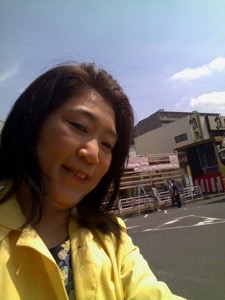 今日は春っぽい黄色いコートをきて